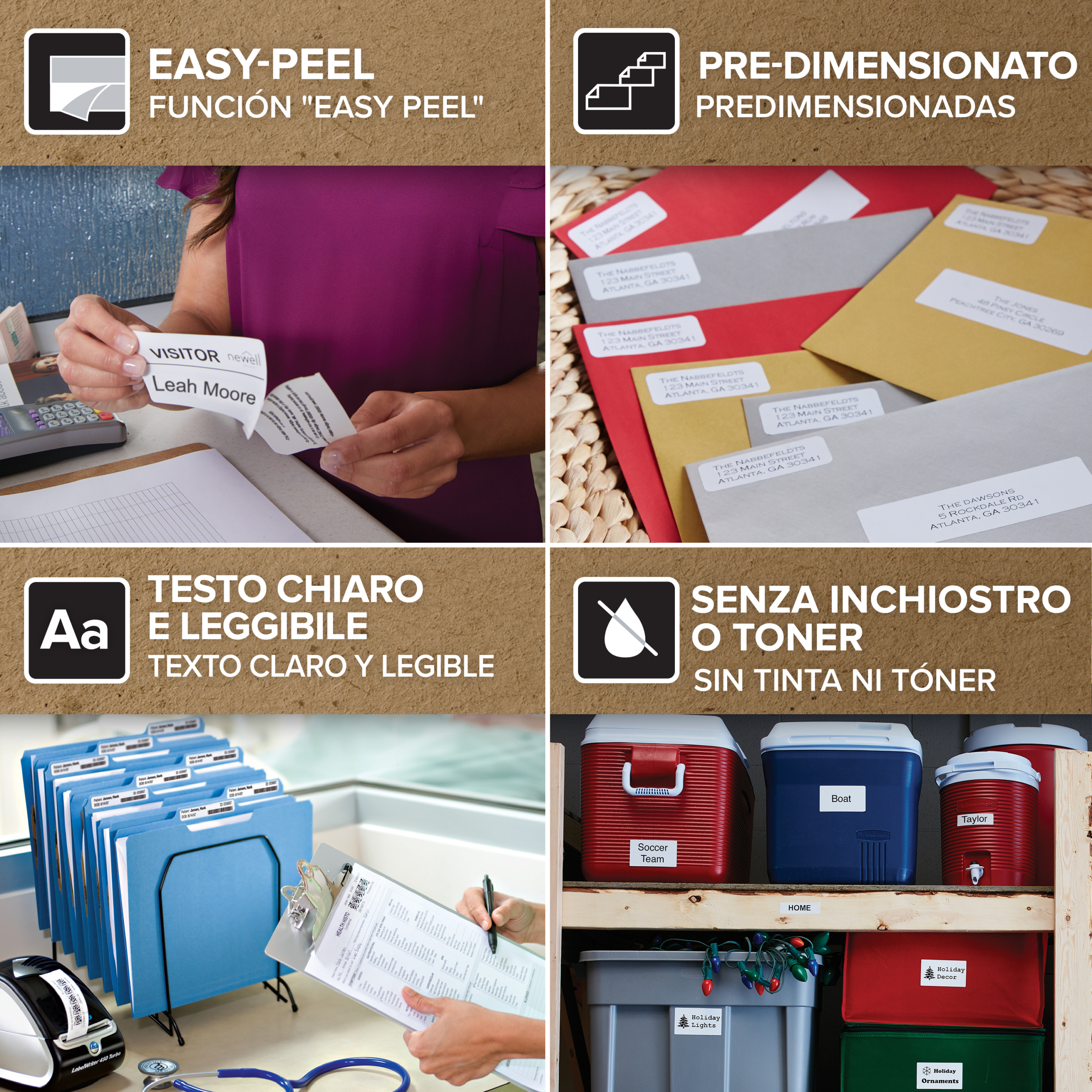 Le etichette originali DYMO LabelWriter sono una soluzione efficiente ed economica per la spedizione di lettere e pacchi e per le esigenze di organizzazione. Grazie alla tecnologia di stampa termica diretta che non utilizza inchiostro o toner, puoi etichettare senza sbavature. Le etichette LeberWriter sono disponibili in rotoli di dimensioni predefinite per stamparne il numero giusto senza fogli, sprechi o inceppamenti. Le etichette LabelWriter sono pensate per le etichettatrici DYMO serie 550/450, 5XL/4XL e LabelWriter Wireless.